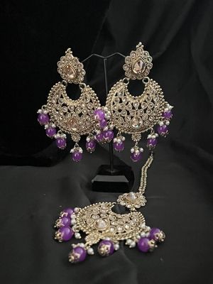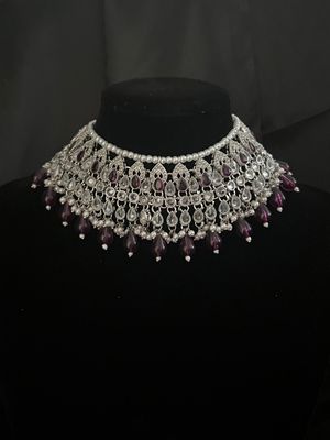 Darkpurple Choker Set with earrings and Tikka